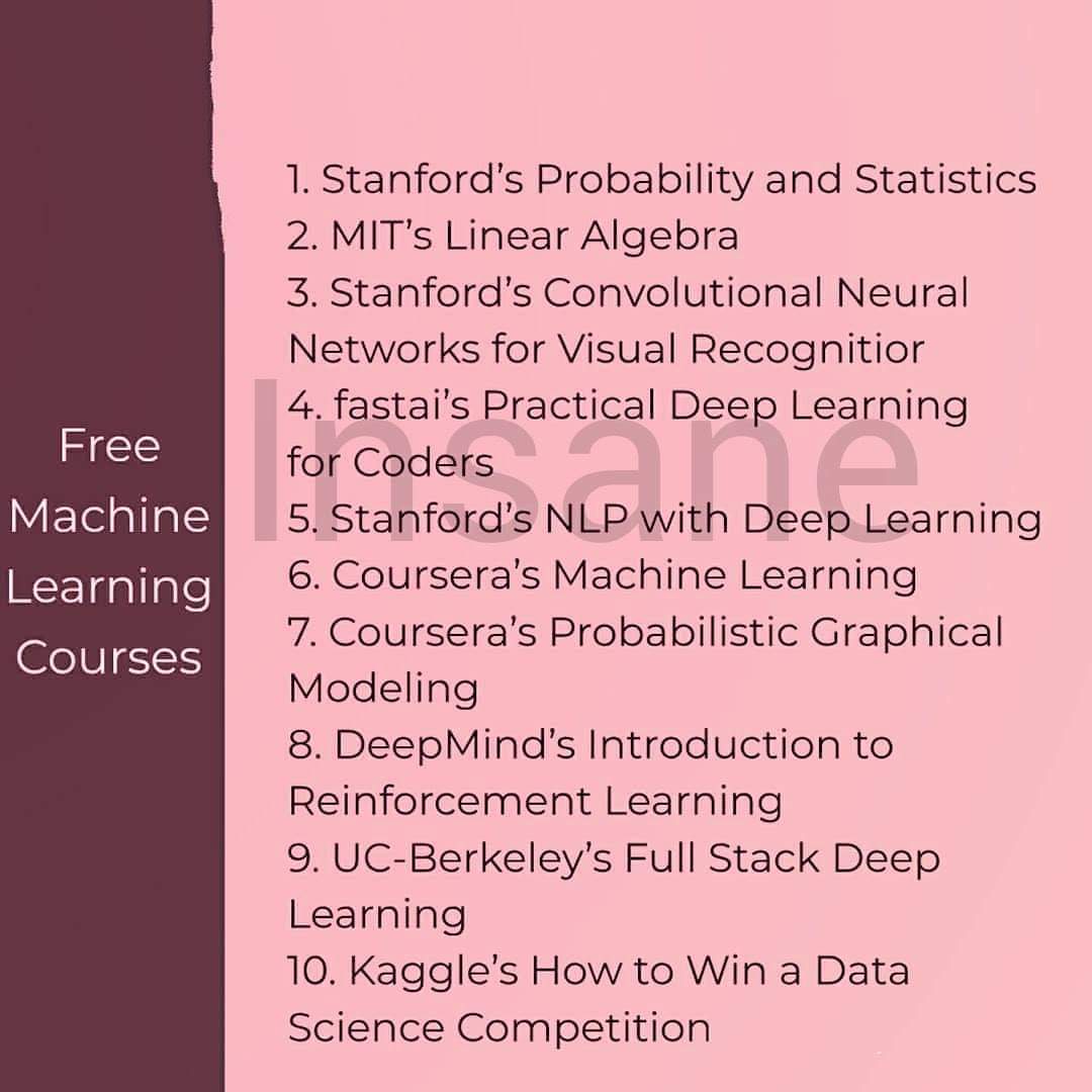 4) Stat 451: Introduction to Machine Learning  Price: Free Taught by: Sebastian Raschka is an Assistant Professor of Statistics at the University of Wisconsin-Madison focusing on machine learning and deep learning research. Course Outcomes: You will learn all the underlying theory of famous Machine Learning Algorithms from Neural Networks to supervised and Unsupervised Learning. This course is originally taught at the University of Wisconsin-Madison by Dr. Sebastian.